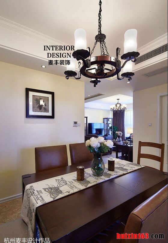 美式风格的空间装饰在色彩的搭配上主要是以自然、怀旧为主,空间内的装饰色彩多以土褐色、绿色以及暖黄色为主,空间内的线条搭配是十分简洁但并不缺乏个性,整体的装饰效果可以带给人们一定的亲切感。 本套餐厅装饰中,空间内的色彩搭配比较柔和,墙壁上粘贴了淡黄色带有条形图案的壁纸,整体的装饰效果十分流畅,虽没有华丽的装饰也没有惊艳的色彩搭配,但整体的装饰效果却并不缺乏设计感。 更多»推荐家装效果图