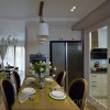 本套餐厅装饰中,空间内的色彩搭配比较柔和,墙壁上粘贴了淡黄色带有条形图案的壁纸,整体的装饰效果十分流畅,虽没有华丽的装饰也没有惊艳的色彩搭配,但整体的装饰效果却并不缺乏设计感。