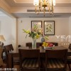 美式风格的空间装饰在色彩的搭配上主要是以自然、怀旧为主,空间内的装饰色彩多以土褐色、绿色以及暖黄色为主,空间内的线条搭配是十分简洁但并不缺乏个性,整体的装饰效果可以带给人们一定的亲切感。 本套餐厅装饰中,空间内的色彩搭配比较柔和,墙壁上粘贴了淡黄色带有条形图案的壁纸,整体的装饰效果十分流畅,虽没有华丽的装饰也没有惊艳的色彩搭配,但整体的装饰效果却并不缺乏设计感。 更多»推荐家装效果图