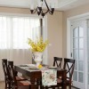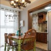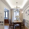 本套餐厅装饰的整体效果可以带给人们一种整洁的感觉,空间内的石膏板吊顶采用了平顶式的设计,中间悬挂了一盏金属材质的吊灯,白色的灯罩虽然没有造型装饰,但也不会带给人们单调、枯燥的感觉,反而是为空间增添了一丝时尚感。
