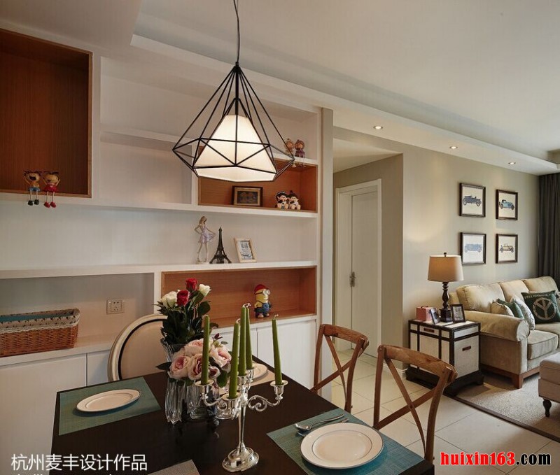 美式风格的餐厅装饰往往都是以开放式的布局为主,一般会以厨房相连,面积较大,操作起来也比较方便,同时也可以将空间的功能性全部都彰显出来,会使空间装饰显得更加通透。