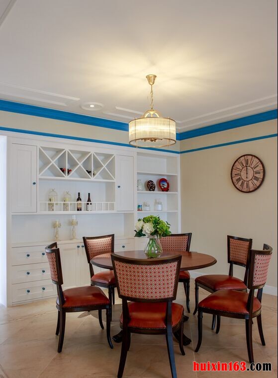 美式风格的餐厅装饰往往都是以开放式的布局为主,一般会以厨房相连,面积较大,操作起来也比较方便,同时也可以将空间的功能性全部都彰显出来,会使空间装饰显得更加通透。