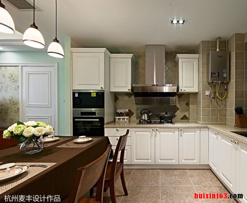 美式风格的餐厅装饰往往都是以开放式的布局为主,一般会以厨房相连,面积较大,操作起来也比较方便,同时也可以将空间的功能性全部都彰显出来,会使空间装饰显得更加通透。