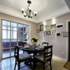 本套餐厅装饰的整体效果可以带给人们一种整洁的感觉,空间内的石膏板吊顶采用了平顶式的设计,中间悬挂了一盏金属材质的吊灯,白色的灯罩虽然没有造型装饰,但也不会带给人们单调、枯燥的感觉,反而是为空间增添了一丝时尚感。