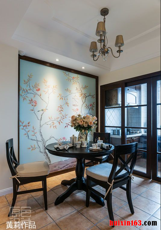 美式风格的餐厅装饰往往都是以开放式的布局为主,一般会以厨房相连,面积较大,操作起来也比较方便,同时也可以将空间的功能性全部都彰显出来,会使空间装饰显得更加通透。