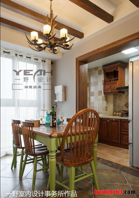 美式风格的餐厅装饰往往都是以开放式的布局为主,一般会以厨房相连,面积较大,操作起来也比较方便,同时也可以将空间的功能性全部都彰显出来,会使空间装饰显得更加通透。