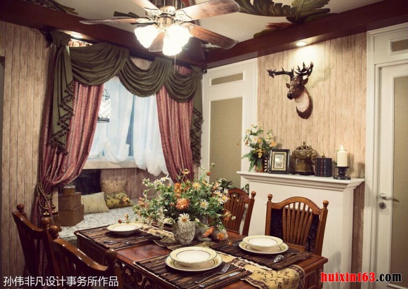 每一种风格都会有自己独特的代表造型或是代表颜色,例如地中海风格的特色就是天蓝与纯白的色彩搭配,美式风格的标志就是褐色石墙、砖砌或石砌的壁炉造型,这样的造型设计最可以将美式风格的装饰魅力展现出来。