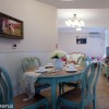 本套餐厅装饰可以带给人们一种大气的感觉,石膏板吊顶上做了精致的造型设计,可以将中间的铁艺吊灯凸显的更加富有个性,下方的实木餐桌搭配上蓝色的座椅,更是一种惊艳的搭配,可以令人过目不忘。