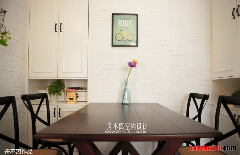 摇椅、碎花布艺、野花盆栽、小麦草、水果、瓷盘、精致的铁艺装饰物品等,当这几样独立的物品组合在一起时,我们脑海中浮现出的画面一定是十分清新并附有自然色彩的,这也是美式田园风格的装饰特点。