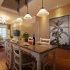 白色的空间内黑色的实木餐桌以及座椅便会显得更加显眼,这也是凸显时尚设计的一种搭配手法,石膏板吊顶上的设计比较简单,但并不会带给人们厌烦感,搭配上一款造型简洁的灯饰更是可以将美式风格的魅力彰显出来。