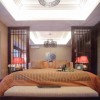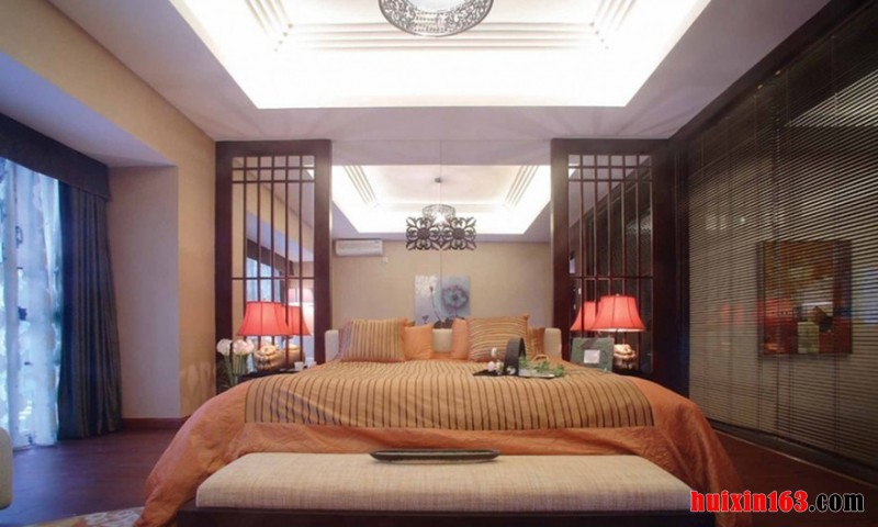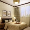 卧室古典元素与现代材质的巧妙兼柔,家具、窗棂、布艺床品相互辉映,再现了移步变景的精妙小品,将其中的经典元素提炼并加以丰富,同时改变原有空间布局中等级、尊卑等封建思想,卧室干净利落、简洁的设计,简单的色调。给传统家居文化注入了新的气息。整体看上去舒服,清爽,又显得安逸。顶面上采用射灯照明,光线更加的均匀明亮。