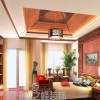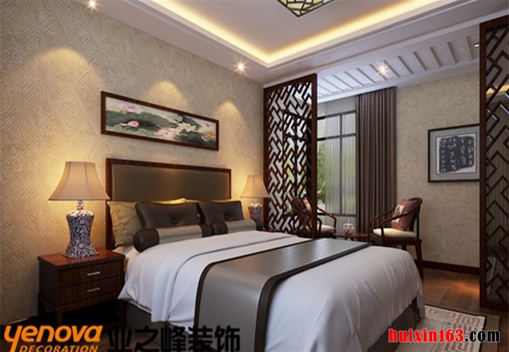 卧室古典元素与现代材质的巧妙兼柔,家具、窗棂、布艺床品相互辉映,再现了移步变景的精妙小品,将其中的经典元素提炼并加以丰富,同时改变原有空间布局中等级、尊卑等封建思想,卧室干净利落、简洁的设计,简单的色调。给传统家居文化注入了新的气息。整体看上去舒服,清爽,又显得安逸。顶面上采用射灯照明,光线更加的均匀明亮。
