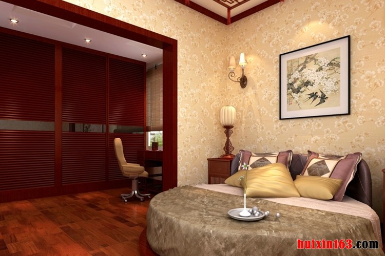 卧室古典元素与现代材质的巧妙兼柔,家具、窗棂、布艺床品相互辉映,再现了移步变景的精妙小品,将其中的经典元素提炼并加以丰富,同时改变原有空间布局中等级、尊卑等封建思想,卧室干净利落、简洁的设计,简单的色调。给传统家居文化注入了新的气息。整体看上去舒服,清爽,又显得安逸。顶面上采用射灯照明,光线更加的均匀明亮。