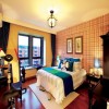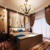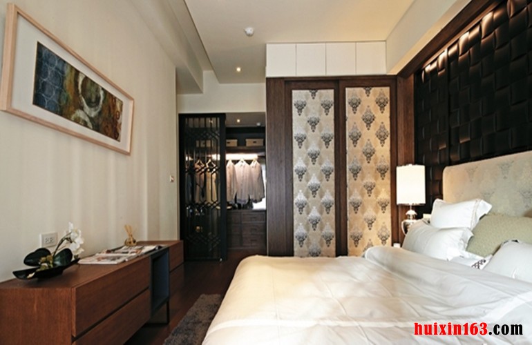 卧室古典元素与现代材质的巧妙兼柔,家具、窗棂、布艺床品相互辉映,再现了移步变景的精妙小品,将其中的经典元素提炼并加以丰富,同时改变原有空间布局中等级、尊卑等封建思想,卧室干净利落、简洁的设计,简单的色调。给传统家居文化注入了新的气息。整体看上去舒服,清爽,又显得安逸。顶面上采用射灯照明,光线更加的均匀明亮。
