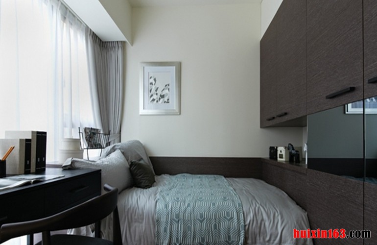 卧室古典元素与现代材质的巧妙兼柔,家具、窗棂、布艺床品相互辉映,再现了移步变景的精妙小品,将其中的经典元素提炼并加以丰富,同时改变原有空间布局中等级、尊卑等封建思想,卧室干净利落、简洁的设计,简单的色调。给传统家居文化注入了新的气息。整体看上去舒服,清爽,又显得安逸。顶面上采用射灯照明,光线更加的均匀明亮。