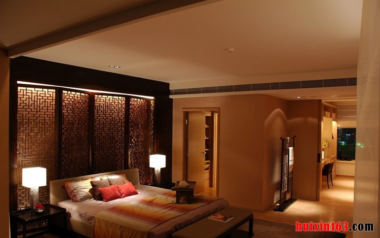 卧室设计上采用了古典风格,墙面的色彩,及地面实木地板,古典的卧室门与古典的雕花窗;独特的中式窗花吊顶与古典风情的主灯相互交融…成为整个装饰空间的特色点缀之处,让人感到既大胆、现代而又有浓浓的中国风情。空间格调非常讲究空间的层次感,展现出古典家居的层次之美。再以一些简约的造型为基础,添加了古典元素,使整体空间感觉更加丰富。