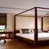 本案建筑本身便非常有特色,卧室面积很大,相对独立,在满足使用功能的基础上,追求中式能带来的文化性和独特魅力。选用天然材质,在家具及配饰的选择上,都选用一些舒适性的材料,如布艺及软垫,增强生活的味道。白色的吊顶彰显了卧室的纯洁与干净,设计整体性的把握是这个户型最大的亮度,在现代功能主义的基础上,尽量给空间一些美学的东西,全方位展示一个具有舒适性、文化感的空间一个静谧的独立的空间。