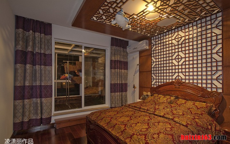 本套设计毫无疑问的是属于古典风格理念的作品,因为它从骨子里都透露着古典传统基调的元素。首先在地面处理上,选用古典复合地板,古香古色的调子,古朴典雅的气息,一下子就把整体感觉提升到了古典的轨道上来。顶棚的设计,在石膏板吊顶的基础上,做了一个古典传统风格吊顶,非常的得体,尽显中国风情。
