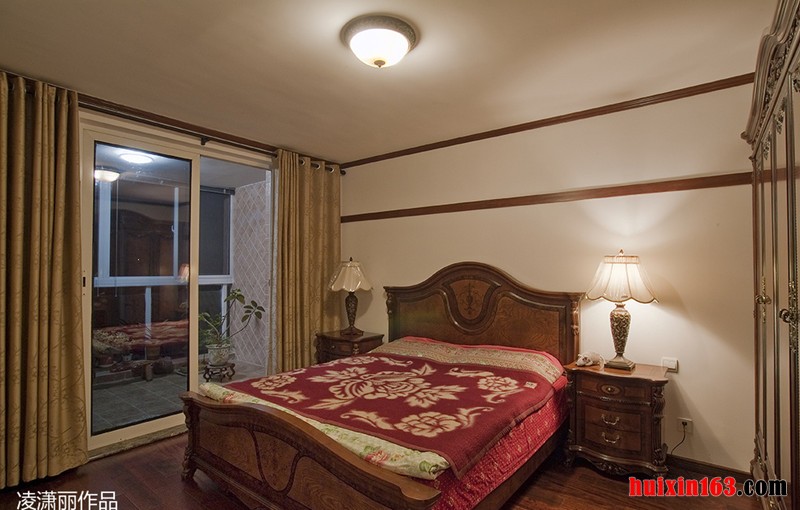 本套设计毫无疑问的是属于古典风格理念的作品,因为它从骨子里都透露着古典传统基调的元素。首先在地面处理上,选用古典复合地板,古香古色的调子,古朴典雅的气息,一下子就把整体感觉提升到了古典的轨道上来。顶棚的设计,在石膏板吊顶的基础上,做了一个古典传统风格吊顶,非常的得体,尽显中国风情。