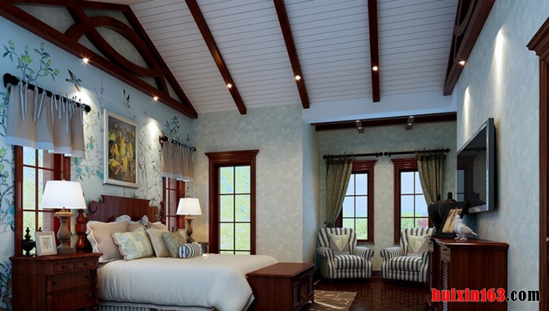 本套设计毫无疑问的是属于古典风格理念的作品,因为它从骨子里都透露着古典传统基调的元素。首先在地面处理上,选用古典复合地板,古香古色的调子,古朴典雅的气息,一下子就把整体感觉提升到了古典的轨道上来。顶棚的设计,在石膏板吊顶的基础上,做了一个古典传统风格吊顶,非常的得体,尽显中国风情。