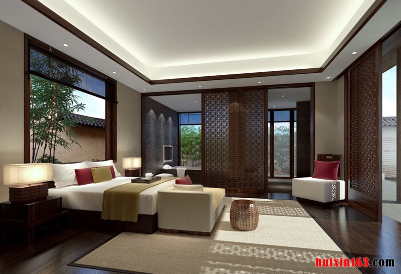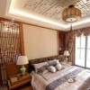 本套设计毫无疑问的是属于古典风格理念的作品,因为它从骨子里都透露着古典传统基调的元素。首先在地面处理上,选用古典复合地板,古香古色的调子,古朴典雅的气息,一下子就把整体感觉提升到了古典的轨道上来。顶棚的设计,在石膏板吊顶的基础上,做了一个古典传统风格吊顶,非常的得体,尽显中国风情。