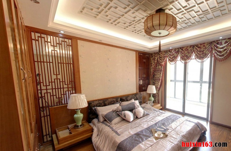 本套设计毫无疑问的是属于古典风格理念的作品,因为它从骨子里都透露着古典传统基调的元素。首先在地面处理上,选用古典复合地板,古香古色的调子,古朴典雅的气息,一下子就把整体感觉提升到了古典的轨道上来。顶棚的设计,在石膏板吊顶的基础上,做了一个古典传统风格吊顶,非常的得体,尽显中国风情。