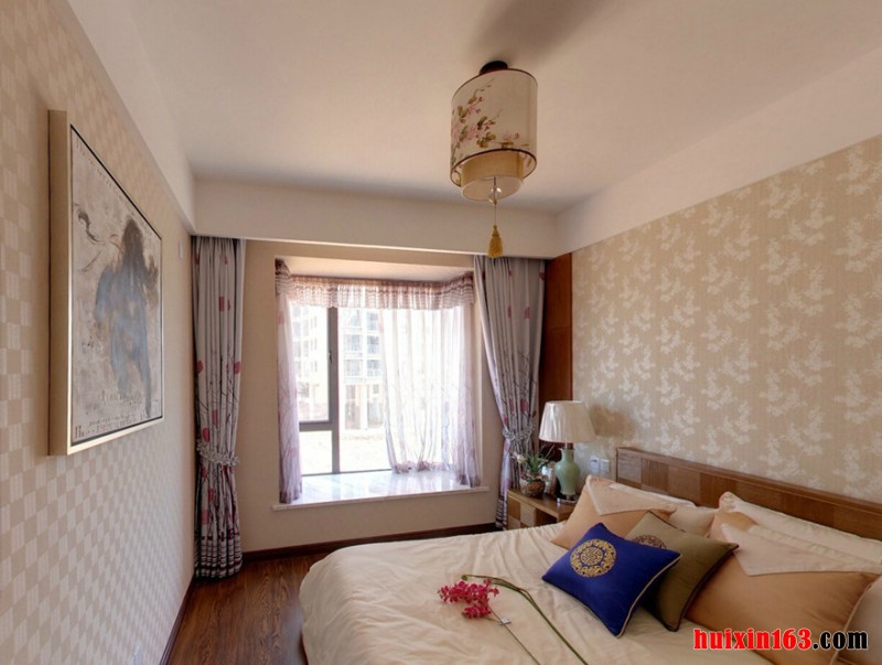 本套设计毫无疑问的是属于古典风格理念的作品,因为它从骨子里都透露着古典传统基调的元素。首先在地面处理上,选用古典复合地板,古香古色的调子,古朴典雅的气息,一下子就把整体感觉提升到了古典的轨道上来。顶棚的设计,在石膏板吊顶的基础上,做了一个古典传统风格吊顶,非常的得体,尽显中国风情。