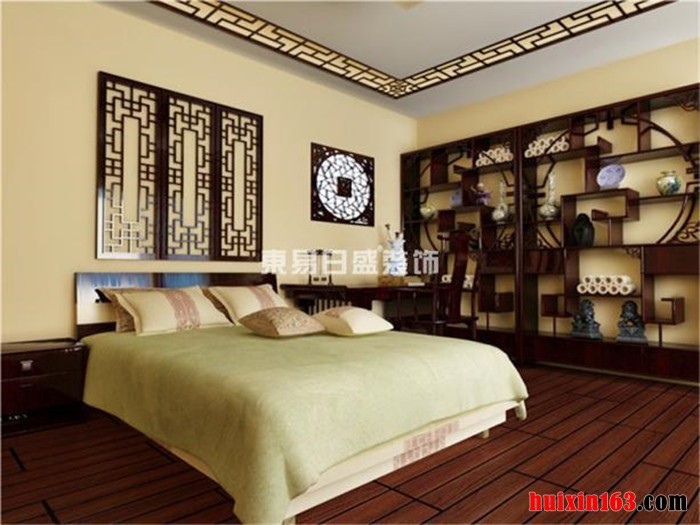 卧室石膏板吊顶,木质雕花线框装饰,造型简约的圆形吸顶灯安装在卧室吊顶中央,明亮的灯带及小射灯四周装饰。木质简约电视柜搭配,营造出了温馨古朴、文雅清丽的古典风格家居。明清时期家居理念的精华,当然,并不是对那个遥远朝代的家装行照般的意思,而是加入现代的生活理念和空间布局。