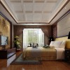 卧室简单和造型配上古典家具,古典的风格便淋漓尽致的展现出来。吊顶的实木圈边和电视的的实木雕花和谐统一,使得古典的元素多而不乱,植物的点缀更能起到相得益彰的效果,就像置身大自然中。