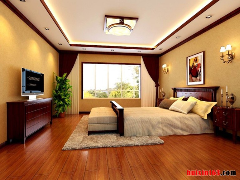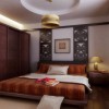 卧室的设计整体以人性化为主,家具的摆放多用对称式的方式,格调随和大气。顶上的吊顶直线条的比较硬,吊顶和背景墙形成鲜明的对比。灯光点缀的巧妙的运用,让空间成功分割清晰,空间层次更为分明。