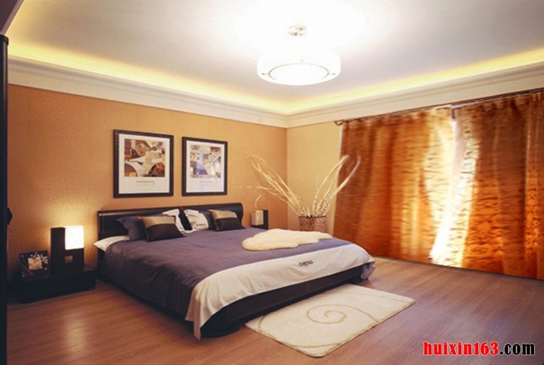 卧室的设计整体以人性化为主,家具的摆放多用对称式的方式,格调随和大气。顶上的吊顶直线条的比较硬,吊顶和背景墙形成鲜明的对比。灯光点缀的巧妙的运用,让空间成功分割清晰,空间层次更为分明。
