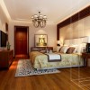 卧室的设计整体以人性化为主,家具的摆放多用对称式的方式,格调随和大气。顶上的吊顶直线条的比较硬,吊顶和背景墙形成鲜明的对比。灯光点缀的巧妙的运用,让空间成功分割清晰,空间层次更为分明。