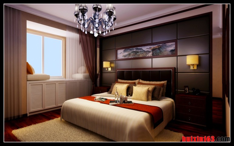 卧室的设计整体以人性化为主,家具的摆放多用对称式的方式,格调随和大气。顶上的吊顶直线条的比较硬,吊顶和背景墙形成鲜明的对比。灯光点缀的巧妙的运用,让空间成功分割清晰,空间层次更为分明。