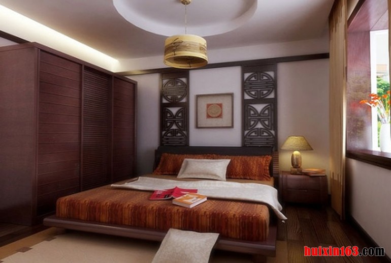 卧室的设计整体以人性化为主,家具的摆放多用对称式的方式,格调随和大气。顶上的吊顶直线条的比较硬,吊顶和背景墙形成鲜明的对比。灯光点缀的巧妙的运用,让空间成功分割清晰,空间层次更为分明。