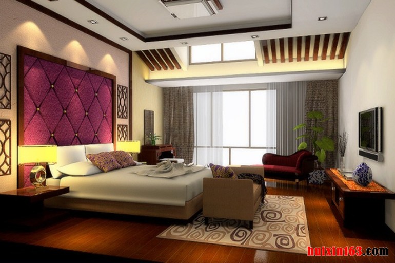 卧室的设计整体以人性化为主,家具的摆放多用对称式的方式,格调随和大气。顶上的吊顶直线条的比较硬,吊顶和背景墙形成鲜明的对比。灯光点缀的巧妙的运用,让空间成功分割清晰,空间层次更为分明。