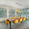 本套餐厅装饰的设计可以带给人们一种大气感,空间内的装饰色彩主要是以白色为主,石膏板吊顶的设计采用了凹凸造型,使整个空间的装饰都显得十分具有立体感,中间的金属材质吊灯的造型也是十分别致的,比较具有现代装饰气息。