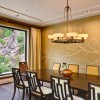 本套餐厅装饰中空间内的主色调是以奶白色为主,整体可以营造出一种温馨舒适的氛围,石膏板吊顶的设计比较独特不规则的造型使整个空间都显得十分通透,挑高的设计也可以将中间的吊灯衬托的更加华美、精致。