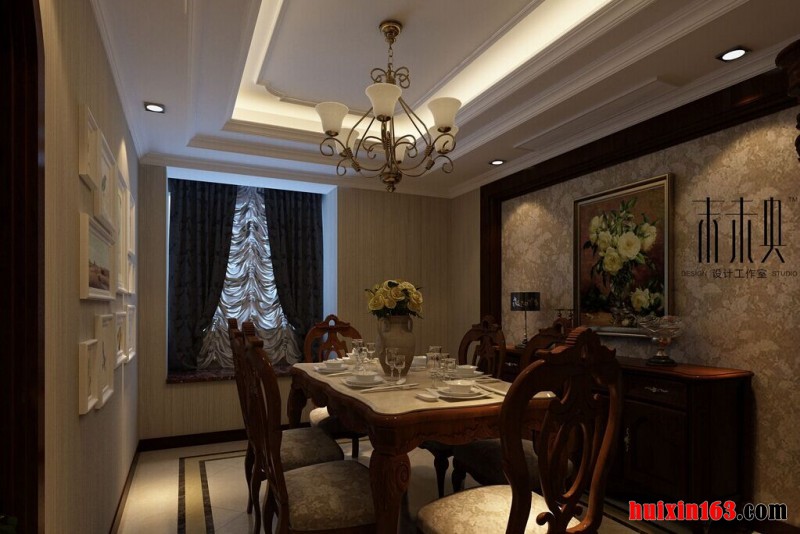 美式田园风格之所以这么受年轻人喜爱,主要是因为它的装饰特点,它的空间装饰内会摒弃掉一起华丽与繁琐,留下的只是一种自然与清新,空间内的装饰一切从简但却并不会失去设计感。 本套餐厅装饰中空间内的色彩搭配主要是以白色为主,石膏板吊顶的设计比较简洁,但又十分具有个性,圆形的凹槽设计可以与下方的实木餐桌形成一种协调的呼应,更赋有“团团圆圆”的美意。 更多»推荐家装效果图