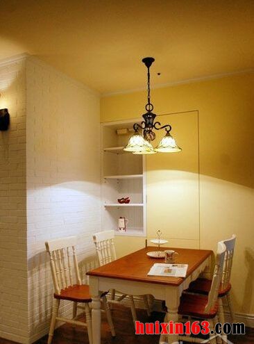 现代人的生活更加注重质感,从房屋装饰中我们就可以看出房屋主人的品味,在美式风格居室装修中也会适当的添加一些富有文艺气息的装饰物品,可以使空间装饰显得更加富有情调,带给人们一种新的享受。 本套餐厅装饰中石膏板吊顶的设计比较简洁,纯白色的吊顶采用了平顶式的设计,并在夹层中安装了一圈白色的灯带,可以使其显得更加明亮,也为空间装饰增添了些许设计感。 更多»推荐家装效果图