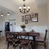 本套餐厅装饰可以带给人们一种十分大气的感觉,空间内的石膏板吊顶采用了平顶式的设计,并在四周的夹层中安装了一圈白色的灯带,中间悬挂的金属吊灯也因此而显得更加别致,并附有时尚气息。