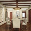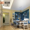 美式风格近年来也比较流行仿古风,仿古式居室装饰会更加具有古典气息,在彰显唯美的同时也会彰显历史文化,空间内的每一个角落中都会散发着文艺气息,与其说是一种装饰,倒不如说是带给人们的一种享受。 本套餐厅装饰的整体效果可以带给我们一种大气感,空间内的石膏板吊顶采用了圆形的造型设计,将中间的铁艺水晶吊灯衬托的更加唯美,同时圆形的造型也可以与下方的实木餐桌形成一种呼应。 更多»推荐家装效果图