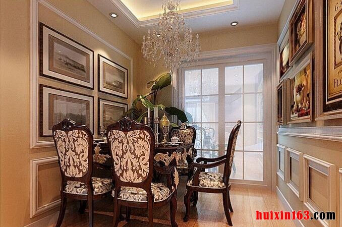 美式田园风格近年来深受人们喜爱,渐渐地它也成为了一种流行趋势,清新淡雅的装饰特点,可以使人们感觉非常的放松,每天在外面的压力与烦恼似乎在回到家的那一刻便全然释怀了,可以足不出户便感受到大自然的气息。 本套餐厅装饰中空间内的装饰色调主要是以白色为主,空间内的石膏板吊顶设计比价时尚同时也充满了大气之势,白色的背景将中间的铁艺吊灯衬托的更加具有个性,下方的实木餐桌也因此显得更加典雅。 更多»推荐家装效果图