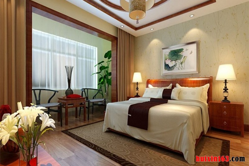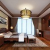 卧室使用单纯的线条,简单的建筑细节,利用软装饰和艺术品点缀空间,使空间显得和谐,淡雅,让我们从中领略古典家居风韵的同时,也有对未来生活的追求。空间不同于传统古典家居的“精雕细琢”,取而代之的是简洁与明快的步调,营造出极富中国特色的大方稳重的生活空间。