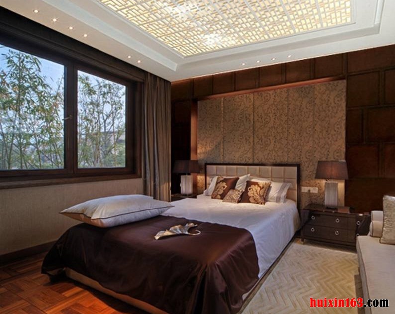卧室使用单纯的线条,简单的建筑细节,利用软装饰和艺术品点缀空间,使空间显得和谐,淡雅,让我们从中领略古典家居风韵的同时,也有对未来生活的追求。空间不同于传统古典家居的“精雕细琢”,取而代之的是简洁与明快的步调,营造出极富中国特色的大方稳重的生活空间。