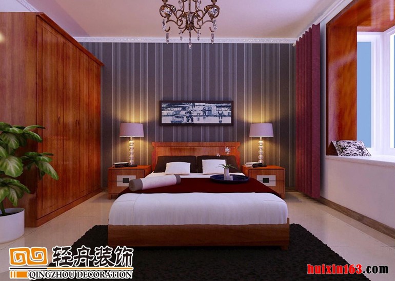 整套设计突显出一种豪华大方的贵族气息,大面积的地毯搭配着造型优雅而舒适的床。温暖的色调,白色的灯光,更显家的温馨。卧室的布置较为温馨,其主人的私密空间,主要是以功能性和舒适性为设计重点。木质家具显示出古典的韵味。在色彩搭配上,采用了暖色调,进而和淡雅的墙面相呼应。卧室的布局和设计风格浑然一体,美轮美奂。