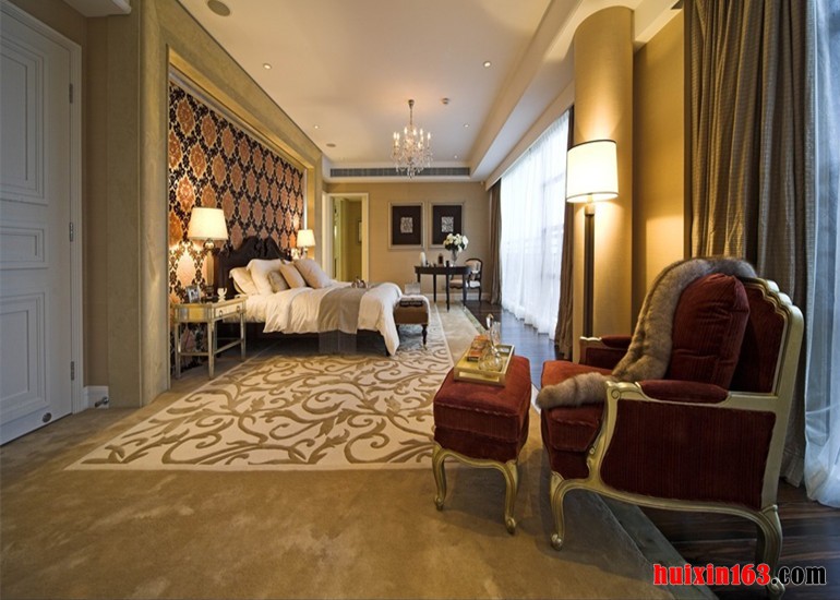 卧室注重线型的搭配和颜色的协调,反对简单化,讲求模式化,在造型设计的构图理论中汲取其它艺术,或自然科学概念,把传统构件通过重新组合出现在新的情景中。既不过分张扬,而又恰到好处地把雍容典雅之气渗透到每个角落,既突出房子本身的自然优势又适当彰显业主的个人品位。