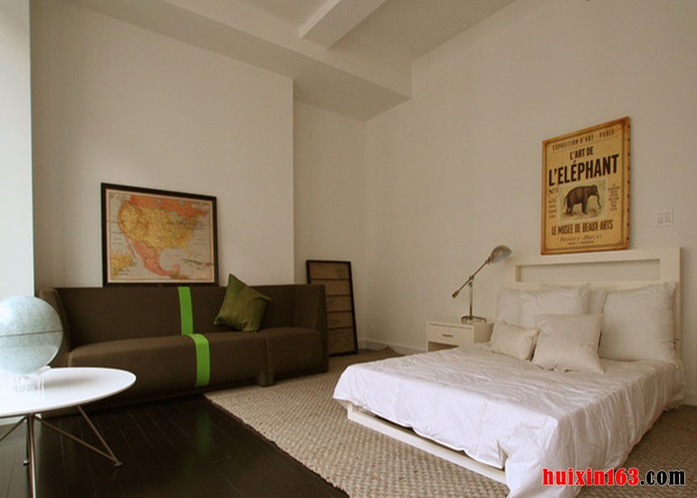卧室异形的吊灯、线条感十足的单色家具、处处都可以体现出简约感与时尚感,适合年轻人的品位。使整个空间看起来更为和谐。