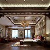 卧室突出简约舒适的实用功能,以及华美的古典精髓。将繁复的装饰凝练为含蓄雅致,与古典中注入简约雅致的设计,使家居装饰更有灵性。顶面设计通过吊灯的搭配,空间感完美融合。简单的造型组合成不简单的设计。