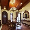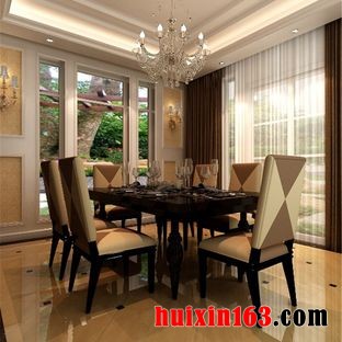 本套餐厅装饰的整体效果可以带给人们一种大气感,空间内的整体色调比较柔和,一款黑色铁艺吊灯悬挂在平顶式设计的石膏板吊顶上,可以更加彰显别致的设计,同时也凸显出了空间装饰的亮点。