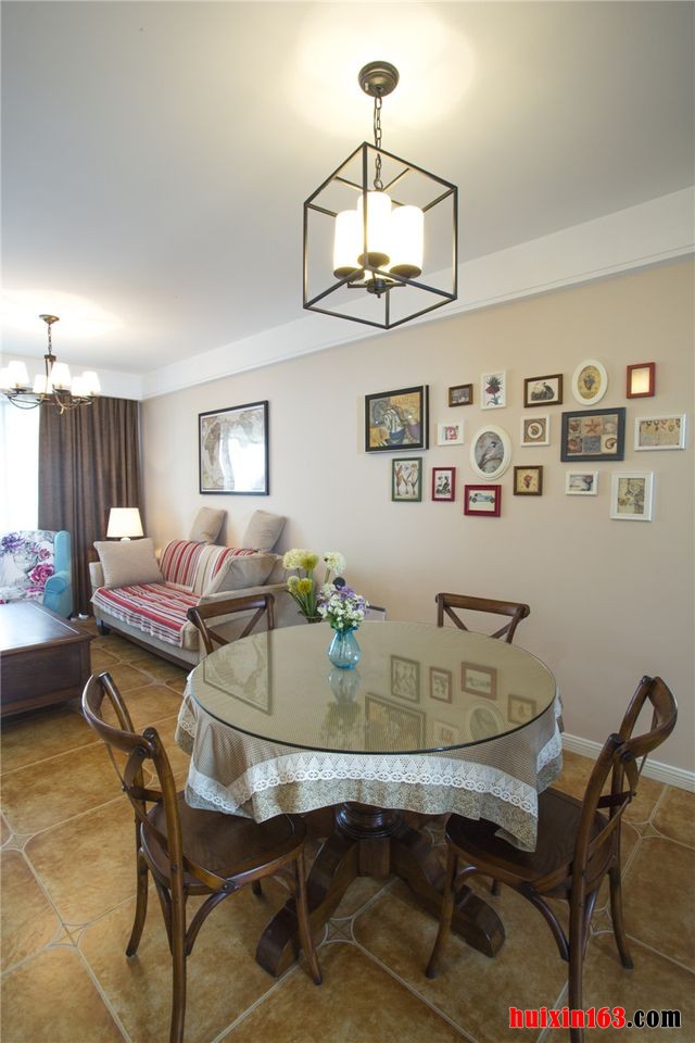 美式古典主义的设计风格流传至今,已经经过了无数次的改良,丰富的文化艺术底蕴,加上开放创新的设计思想,展现在我们眼前的便是富有艺术气息,缺不缺失个性的艺术设计。 本套餐厅装饰的整体效果可以带给人们一种大气感,空间内的整体色调比较柔和,一款黑色铁艺吊灯悬挂在平顶式设计的石膏板吊顶上,可以更加彰显别致的设计,同时也凸显出了空间装饰的亮点。 更多»推荐家装效果图